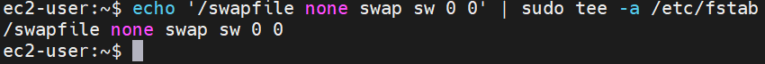 echo '/swapfile none swap sw 0 0' | sudo tee -a /etc/fstab